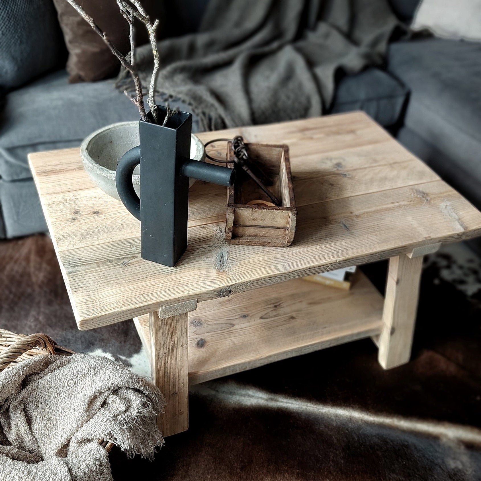 The wood we work with to create this coffee table is reclaimed wood, in which history is visible. And thanks to this, the wood acquires a rustic character, creating unique details. These details are: cracks, nail holes, dents, unevenness, discoloration (rust), saw marks.