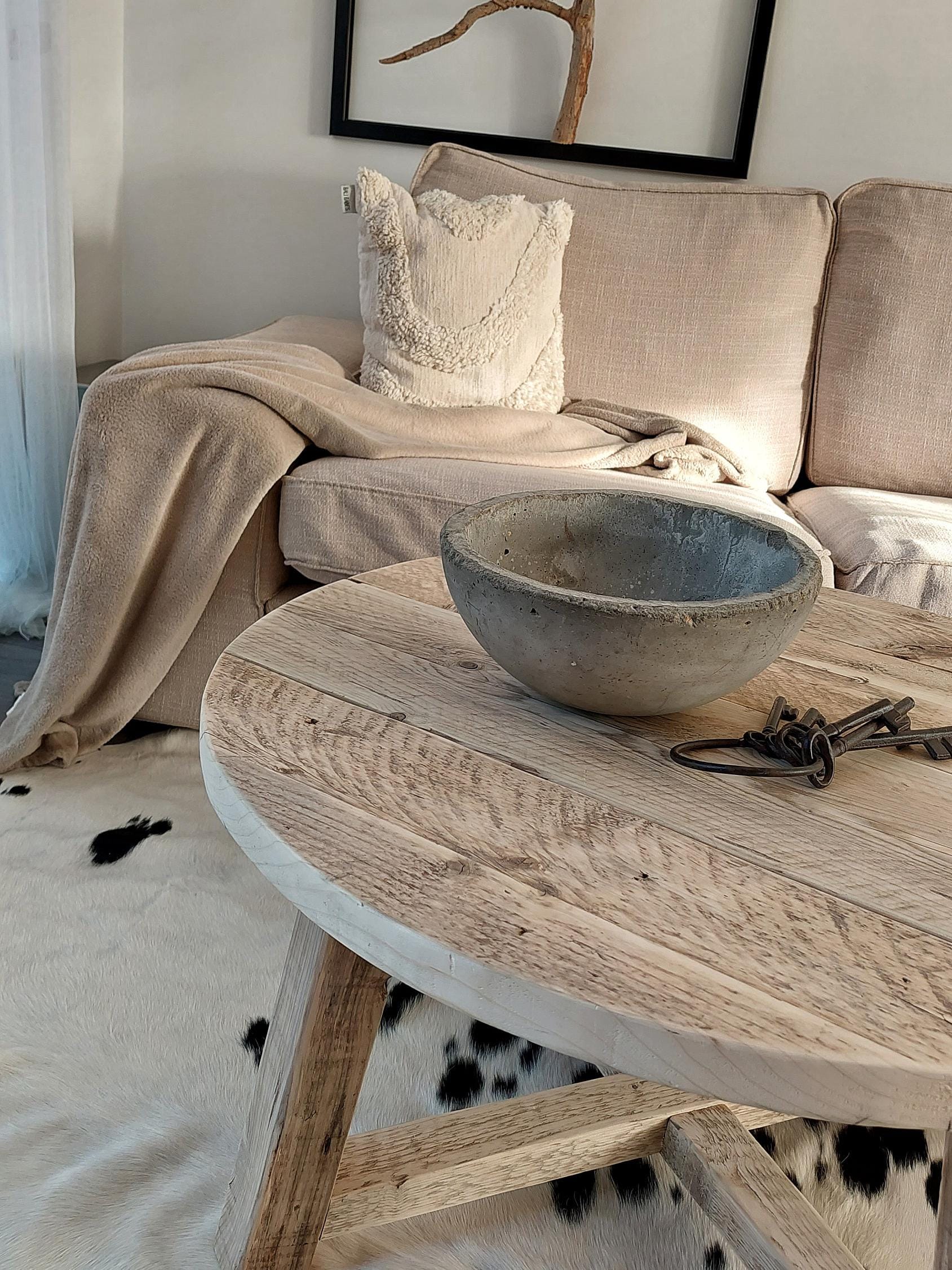 Please keep in mind that the size of the coffee table diameter and its height may vary by approximately 1 cm, due to the fact that it is a piece of furniture made of rustic wood.