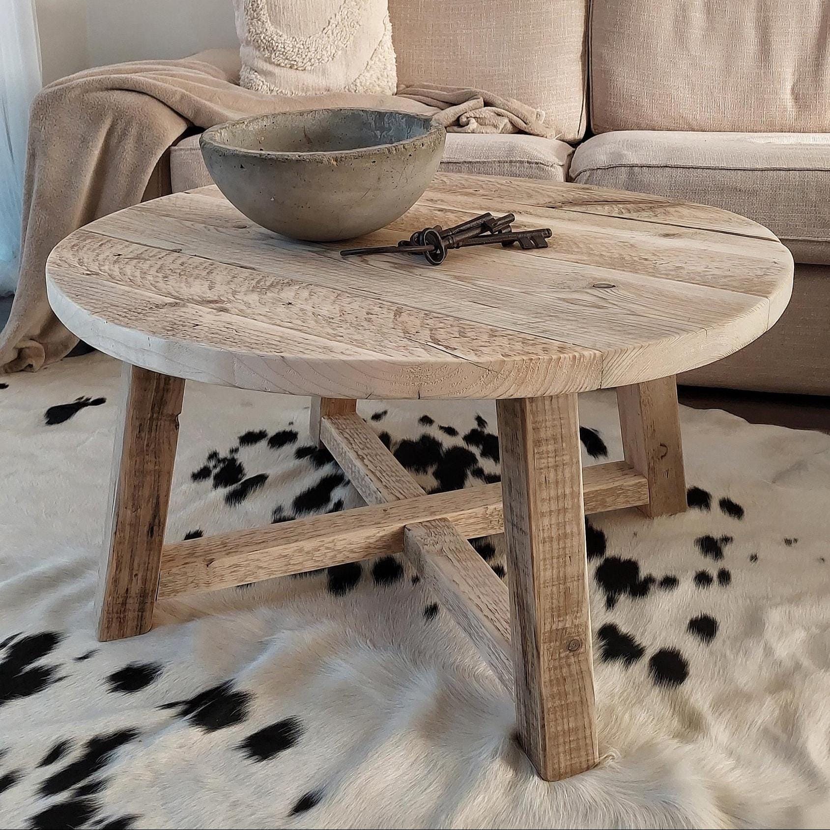 Round Rustic Wooden Coffee Table / Reclaimed Wood Center Table/Farmhouse Living Room Decor /Handmade Solid Wood Table
