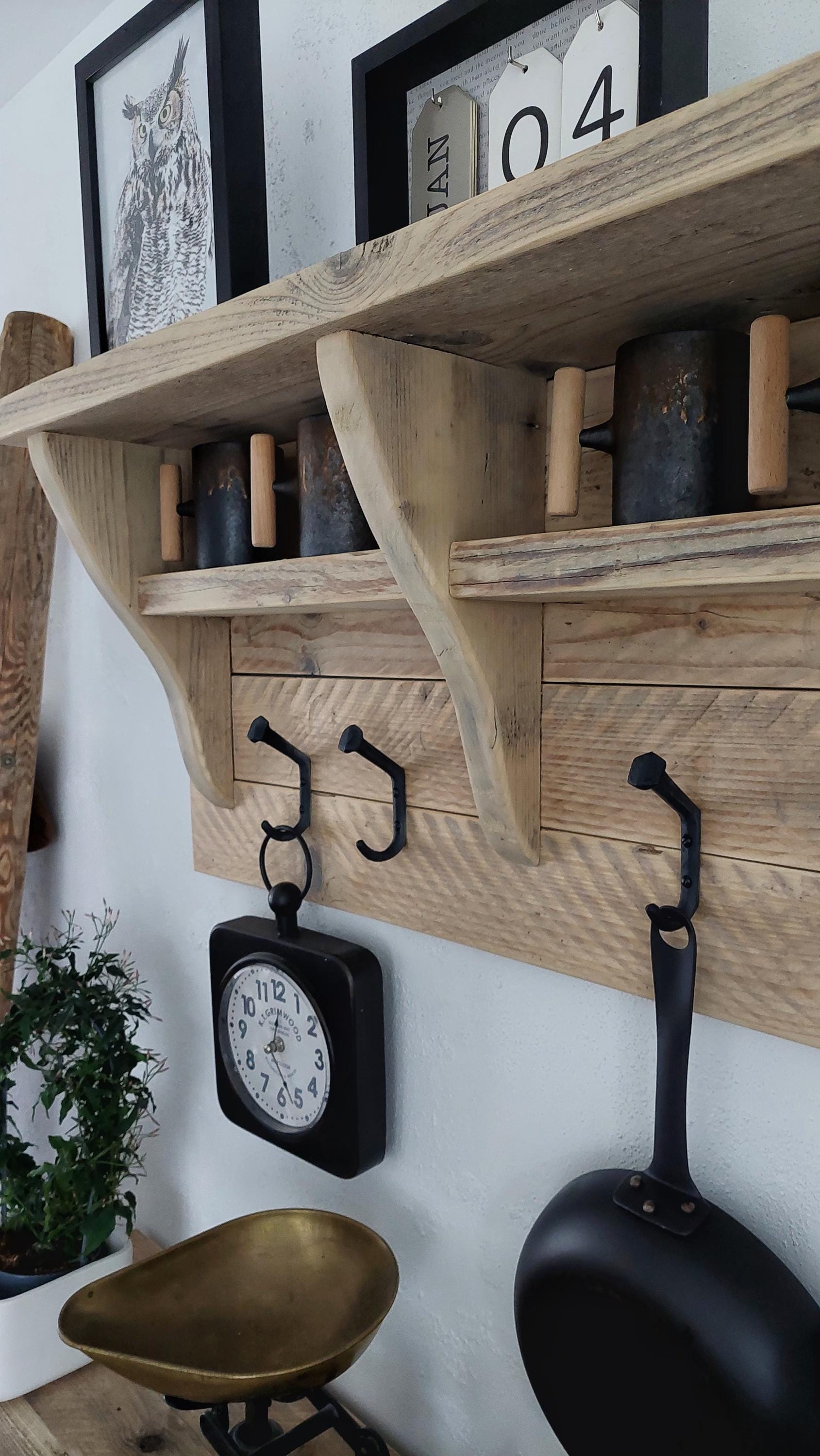 Add timeless charm and practical elegance to your home with our handmade rustic wooden kitchen rack / coat rack. Expertly crafted from reclaimed wood, this versatile piece blends farmhouse style with everyday functionality. Whether used in your kitchen, entryway, or hallway, it’s the perfect solution for keeping your space tidy, organized, and beautifully styled.