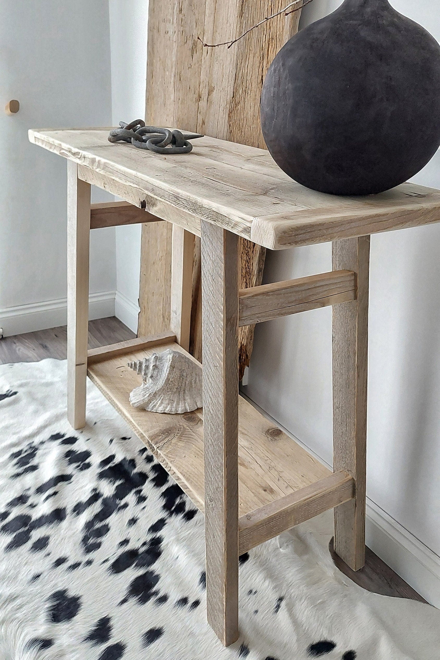 and particularly reclaimed wood varies in patina, grain and level of weathering. There will be different rustic "imperfections" on each console table.