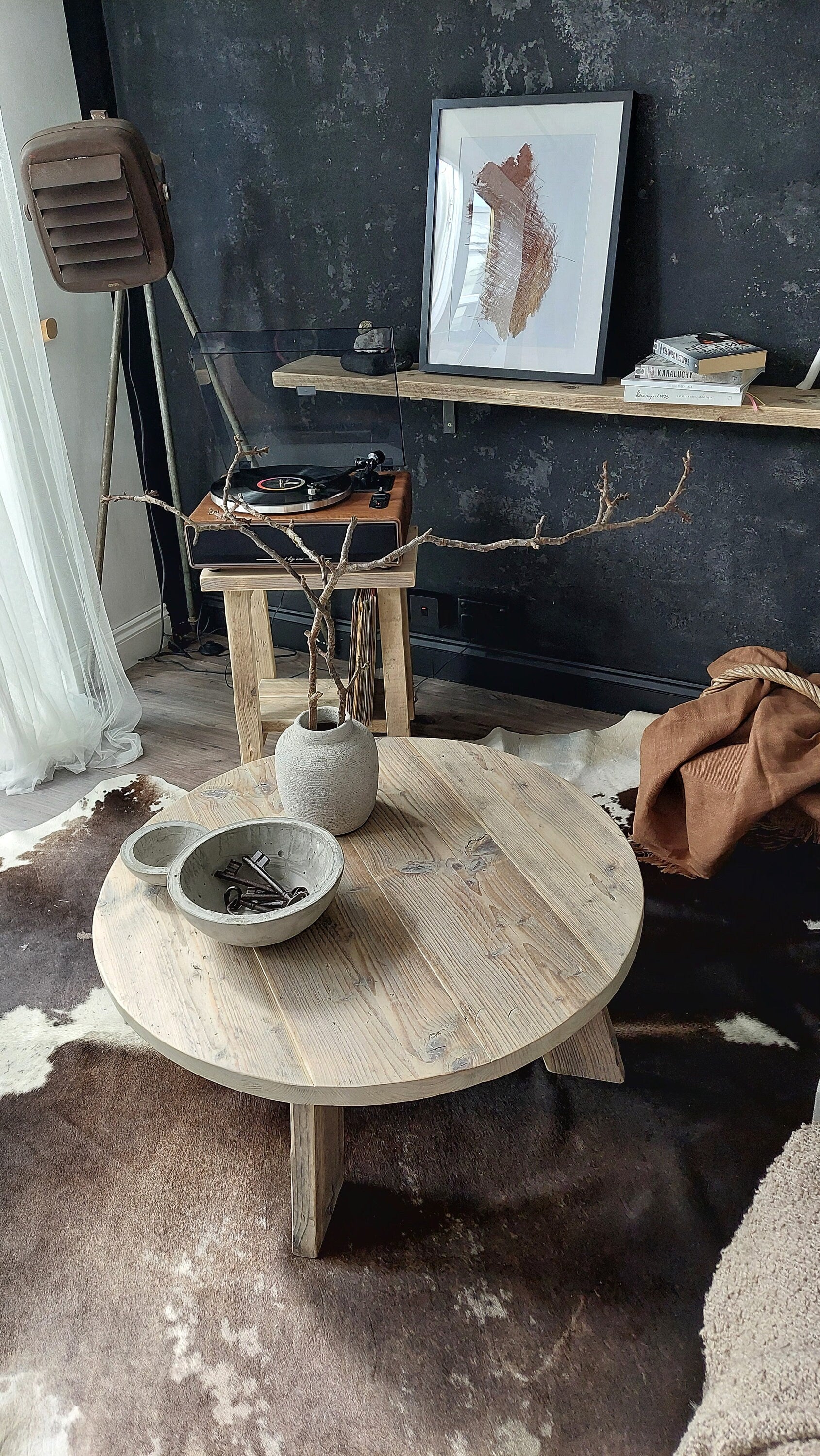 Please keep in mind that the size of the coffee table diameter and its height may vary by approximately 1 cm, due to the fact that it is a piece of furniture made of rustic wood.