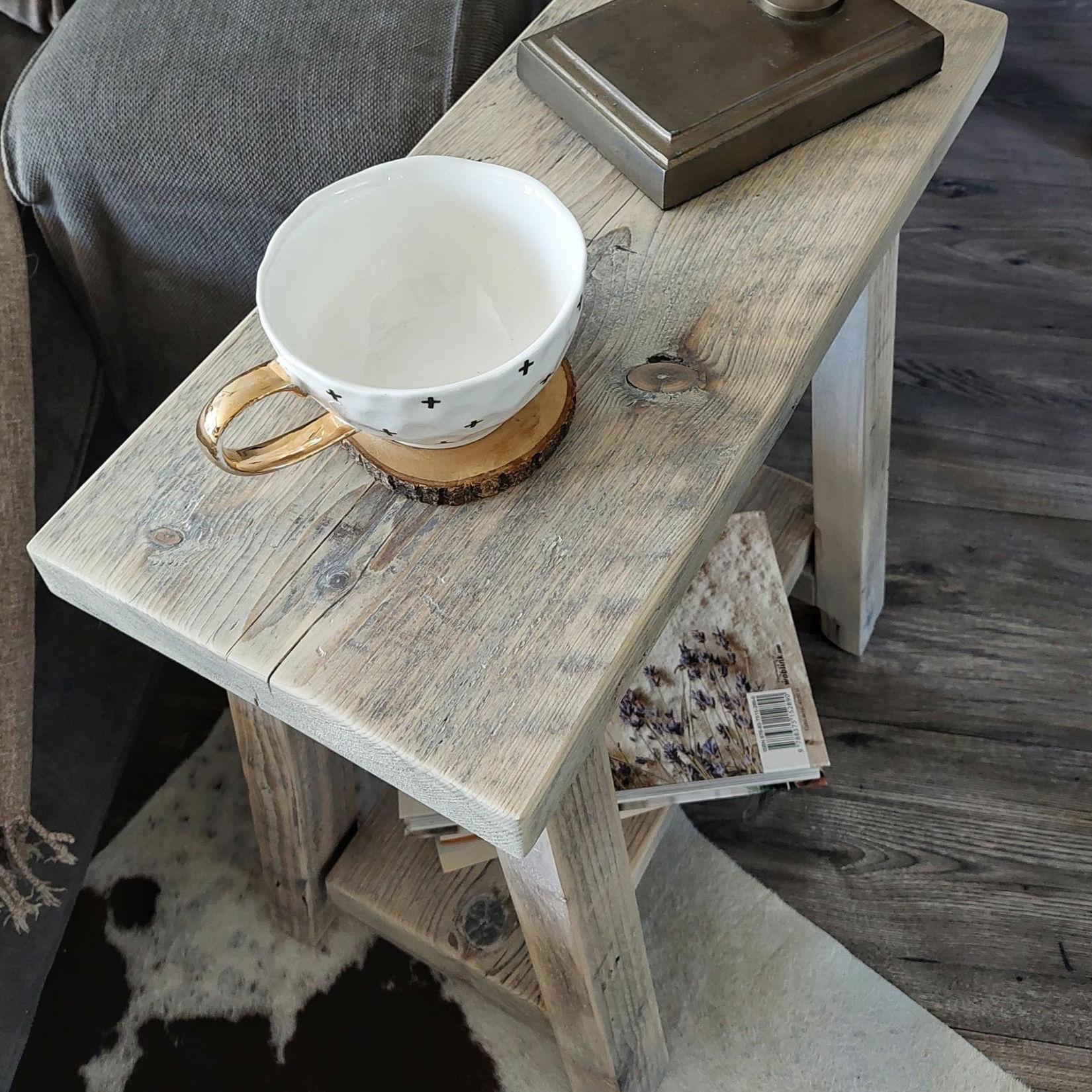 Rustic Wooden Bedside Side Table - Nightstand with Shelf - Narrow Wood Stool
